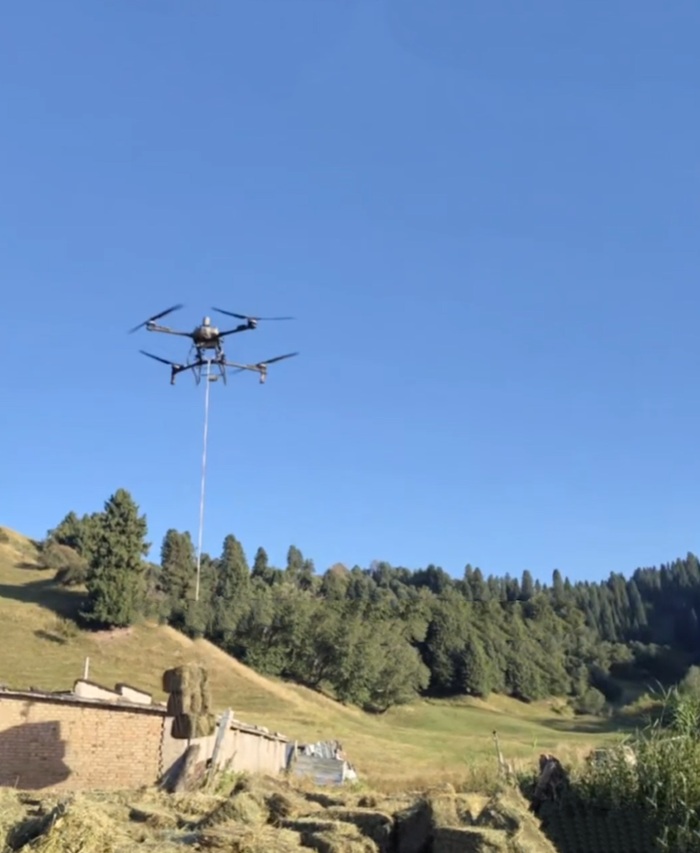 Дроны, оснащенные высокоточной системой позиционирования Beidou, самостоятельно прокладывают маршруты. В зависимости от модели они способны поднимать тюки сена весом 50, 70 или 100 кг за один раз.