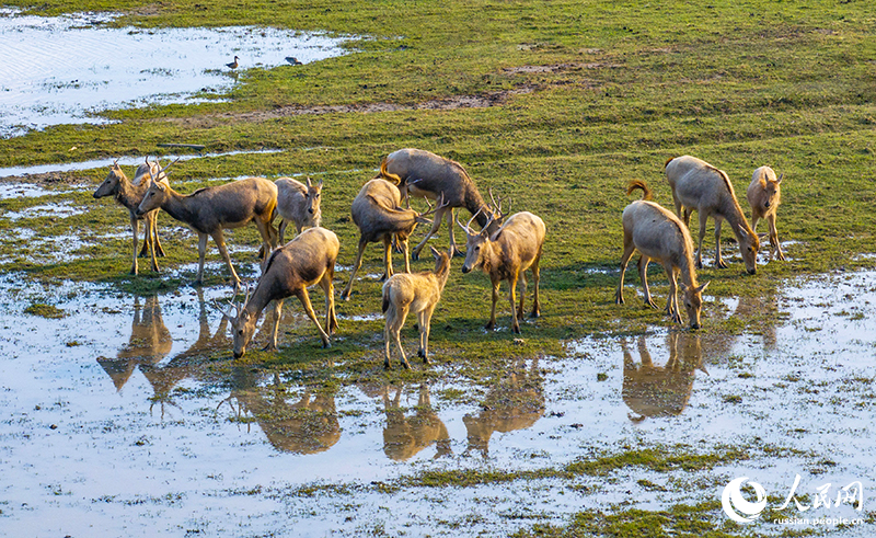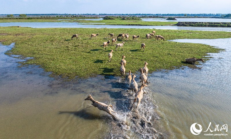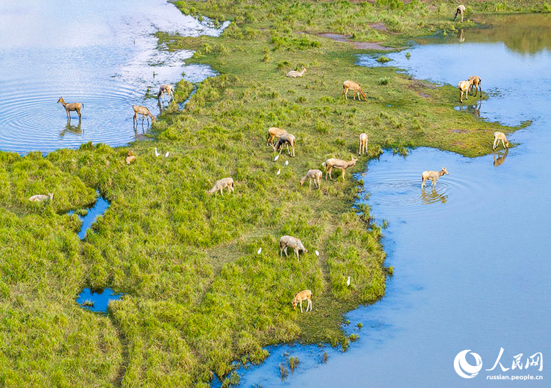 24 сентября, ?Жэньминь жибао? онлайн -- В последние несколько лет улучшается экологическая обстановка в заповеднике ?Елудан? в городе Яньчэн провинции Цзянсу на берегу Желтого моря. Численность популяции оленей милу /олень Давида/ сохраняет здоровый и стабильный рост. В богатых водно-болотных угодьях животные добывают пищу и ?наслаждаются? средой обитания.
