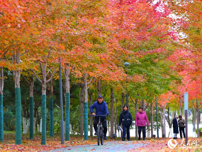 22 октября, ?Жэньминь жибао? онлайн -- В парке ?Юэхэ? в Чанчуне /провинция Цзилинь, Северо-Восточный Китай/ клены облачились в алые наряды, привлекая местных жителей и туристов на настоящий осенний бал.-0-