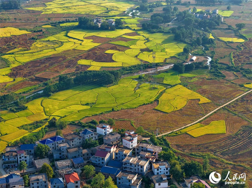 31 октября, ?Жэньминь жибао? онлайн -- В поселке Лаоцяо уезда Цзишуй /провинция Цзянси, Юго-Восточный Китай/ осень окрасила деревни в яркие краски. Золотые рисовые поля гармонично соседствуют с холмами и домами местных жителей, создавая живописную картину сельской жизни в сезон сбора урожая. Об этом сообщает сайт ?Хуаньцюван?.-0-