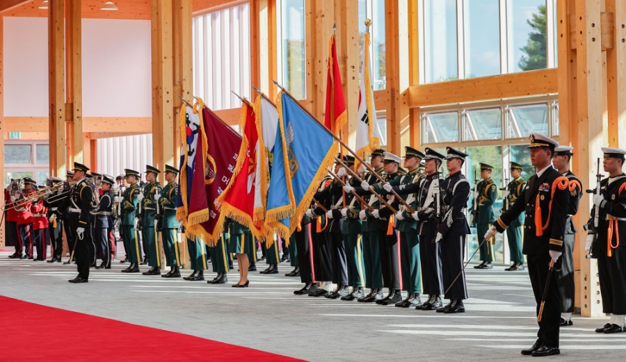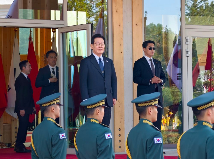 Кенджу /Республика Корея/, 1 ноября /Синьхуа/ -- Председатель КНР Си Цзиньпин в субботу присутствовал на церемонии приветствия, организованной президентом Республики Корея Ли Чжэ Меном.