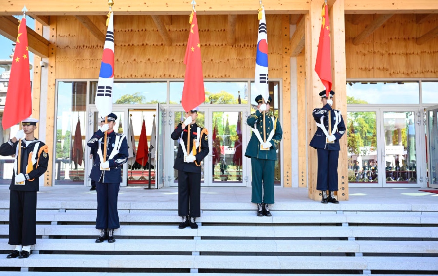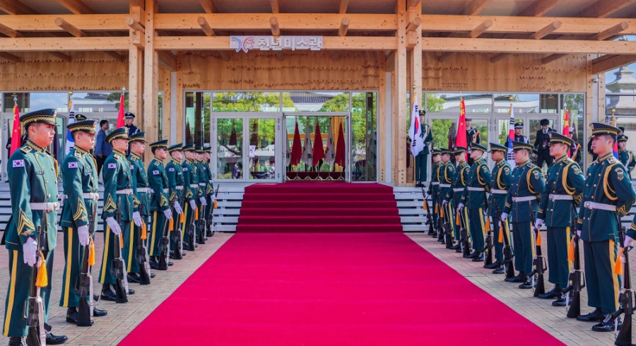 Си Цзиньпин присутствовал на церемонии приветствия, организованной президентом Республики Корея Ли Чжэ Меном