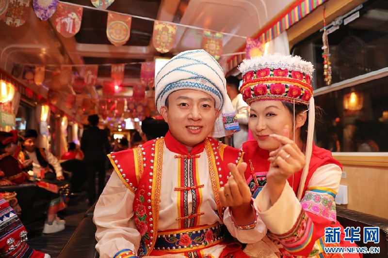 3 ноября, ?Жэньминь жибао? онлайн -- 28 октября в Куньмине провинции Юньнань компания China Railway Kunming Group провела групповую свадьбу для 50 пар работников. После церемонии молодожёны сели на двухэтажный туристический поезд и отправились в романтическое путешествие в город Лицзян.