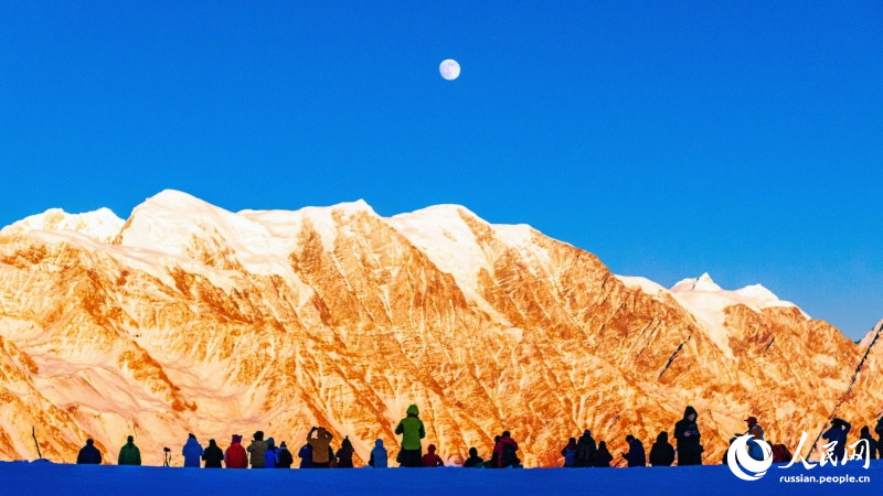 5 ноября, ?Жэньминь жибао? онлайн -- 4 ноября в Кандине Ганьцзы-Тибетского автономного округа в провинции Сычуань туристы посетили живописные места в Национальном природном заповеднике горы Гунга. Им удалось полюбоваться захватывающим пейзажем ?золотой горы в лучах солнца?.