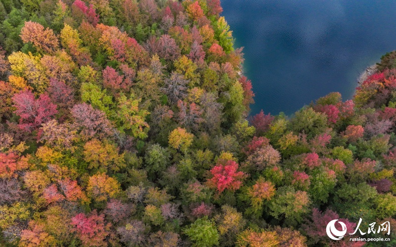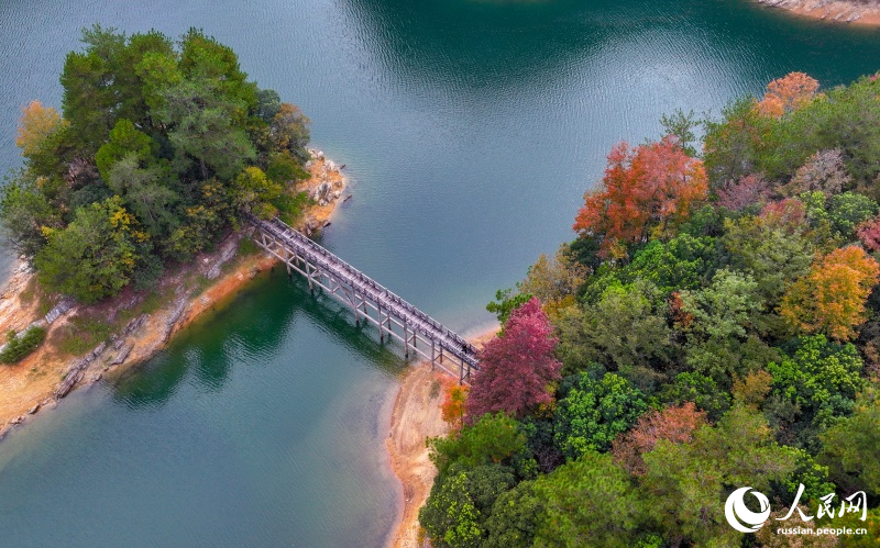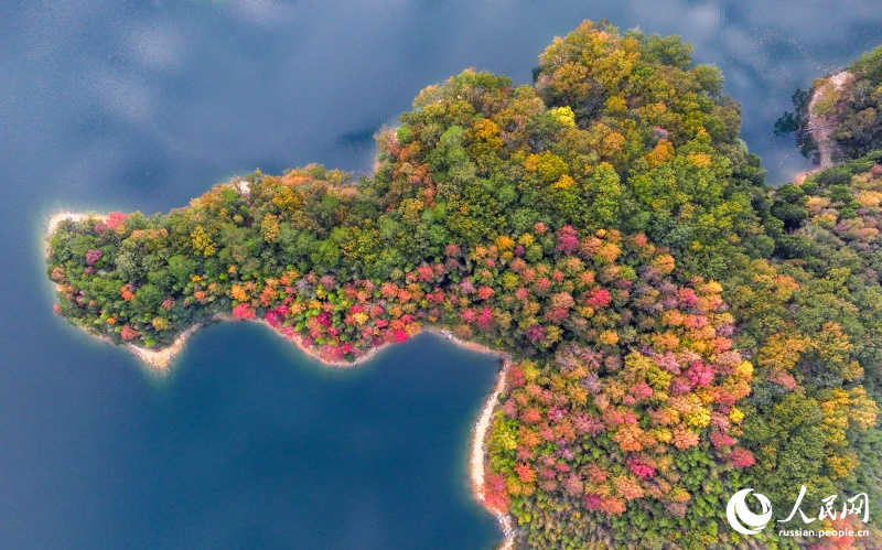 12 ноября, ?Жэньминь жибао? онлайн -- На днях в уезде Чуньань города Ханчжоу провинции Чжэцзян острова разных форм и размеров в заливе Хунъевань (залив Красных листьев) озера Цяньдаоху (озера Тысячи островов) покрылись яркими осенними красками, создав живописную картину.
