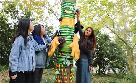 13 ноября, ?Жэньминь жибао? онлайн -- С приходом прохладной погоды на кампусе Чжэцзянского университета сельского и лесного хозяйства деревья украсили мягкими декоративными элементами. Инсталляции выполнены студентами специальности ?Экологическое проектирование? в рамках курса ?Пространственное планирование?.