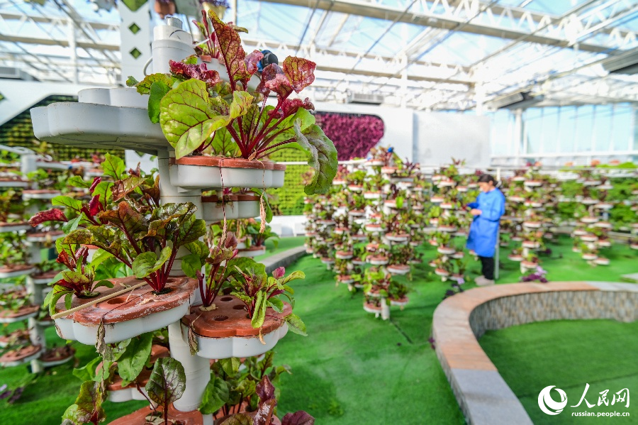 Центр объединяет системы вертикального земледелия, а также производственные комплексы по выращиванию листовых и плодовых культур. В рамках интеллектуального управления всем циклом выращивания применяются передовые агротехнические решения, включая использование интернета вещей на базе технологии 5G и бионического спирального метода культивирования.-0-