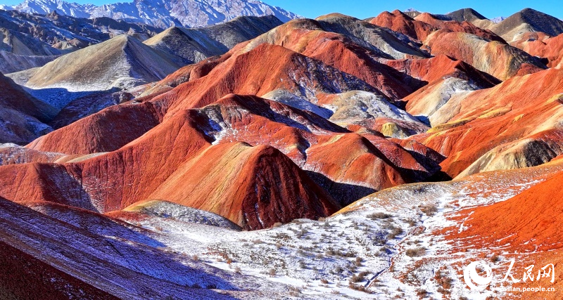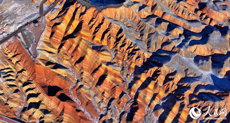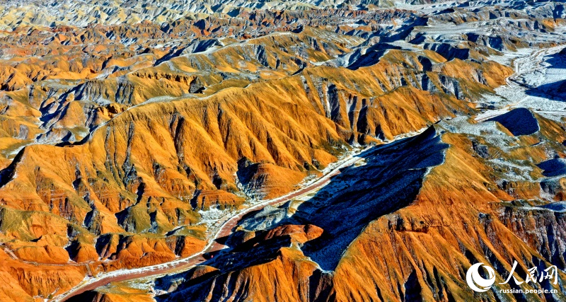 27 ноября, ?Жэньминь жибао? онлайн -- 24 ноября после снегопада разноцветные скалы в Национальном геопарке Чжанъе Данься в провинции Ганьсу покрылись белой пеленой. Белый снег и красочные формы рельефа Данься гармонично переливаются, создавая неповторимую картину очаровательной природы.
