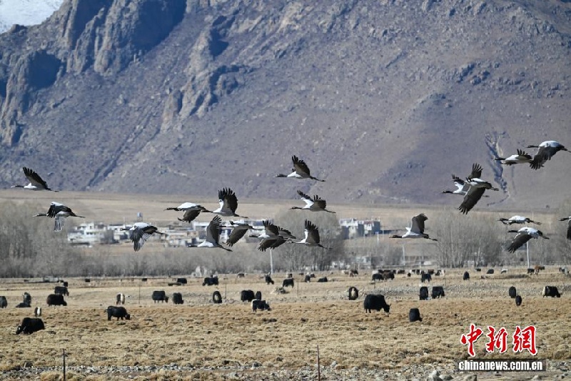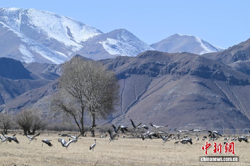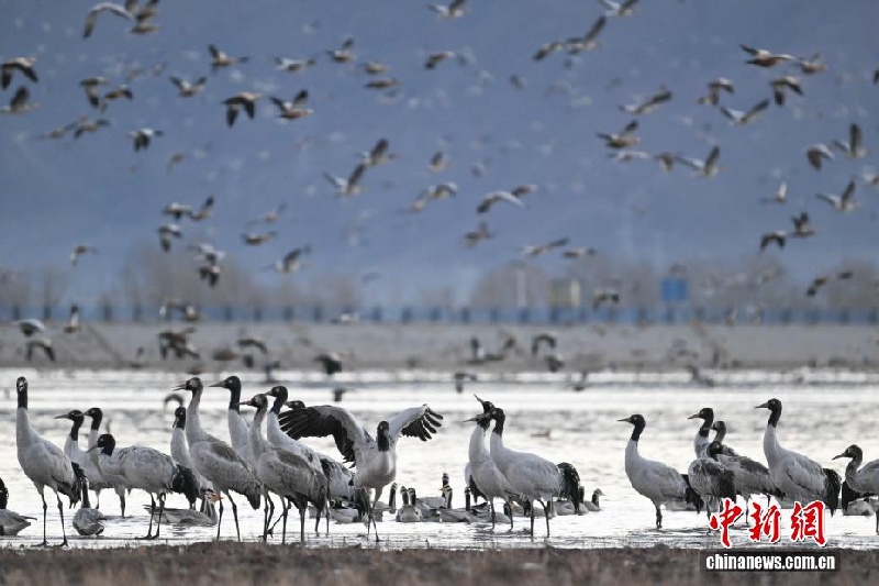 28 ноября, ?Жэньминь жибао? онлайн -- В природный заповедник уезда Линьчжоу Сицзанского автономного района /Юго-Западный Китай/ на зимовку прилетает большое количество черношейных журавлей. Птицы кормятся в водохранилище Кацзы, на сельскохозяйственных полях и водно-болотных угодьях. Уезд расположен в верховьях реки Лхаса и в бассейне реки Пэнбо, что делает его одним из основных мест зимовки этих редких птиц, сообщает сайт ?Хуаньцюван?.